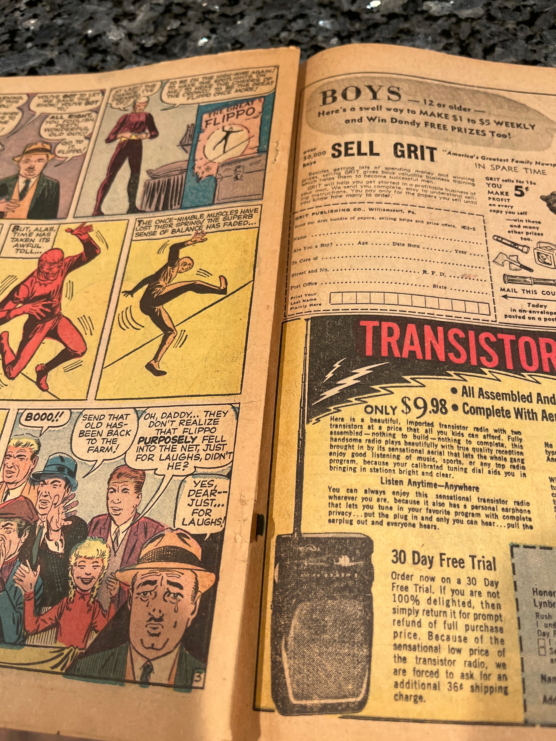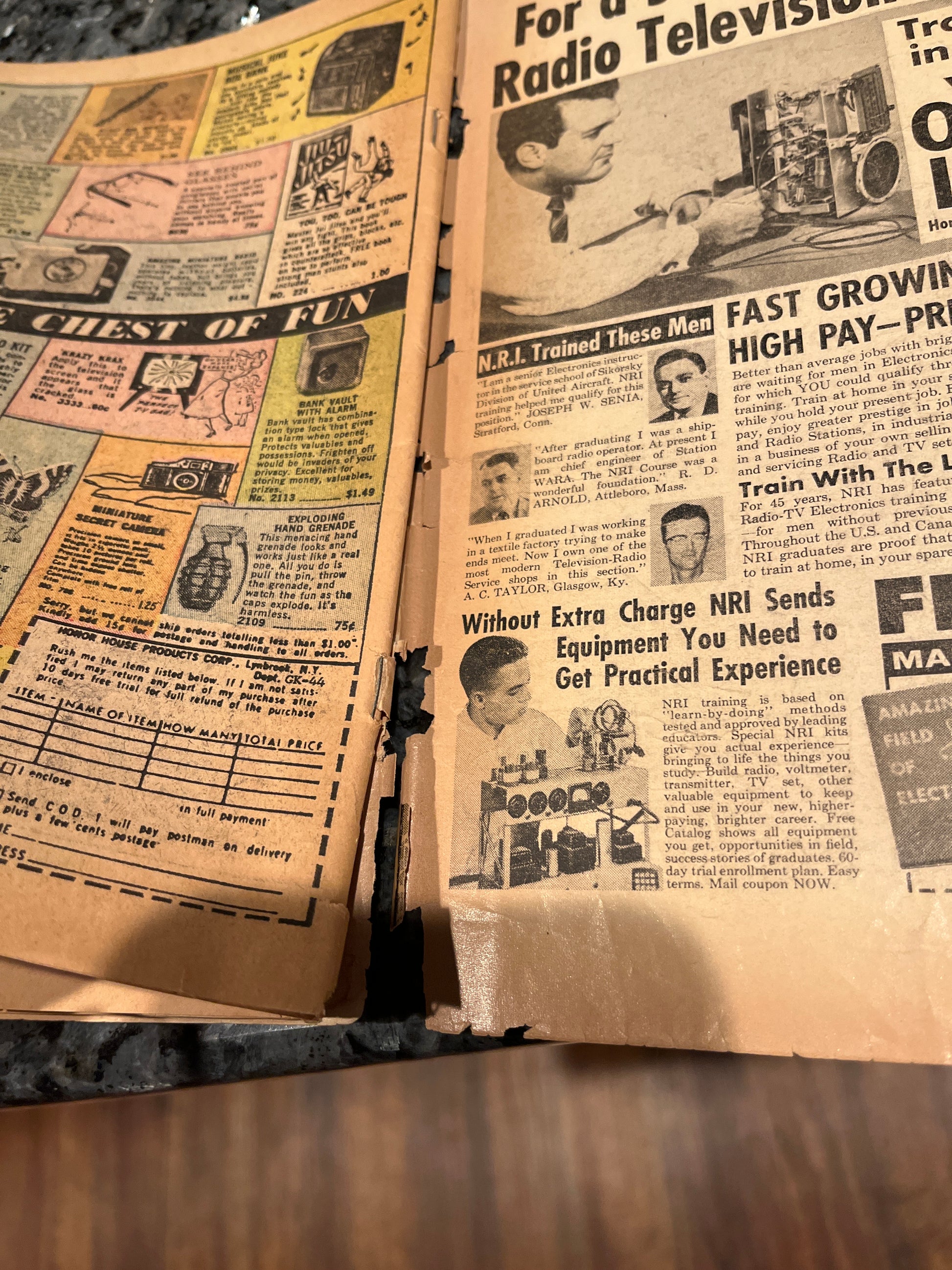 The comic is missing a centerfold and brittle with cover and spine and corner wear but complete and still attached as in the pics